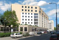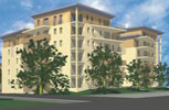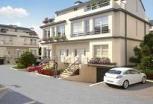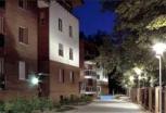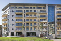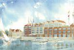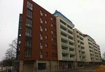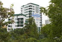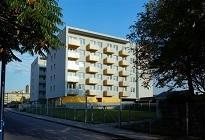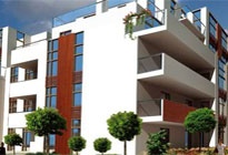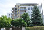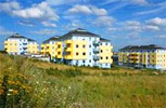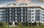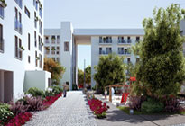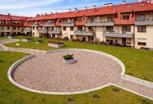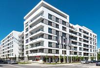 Elegancka elewacja budynków w odcieniach bieli i balkony z elementami szkła tworzą klimat tego miejsca.